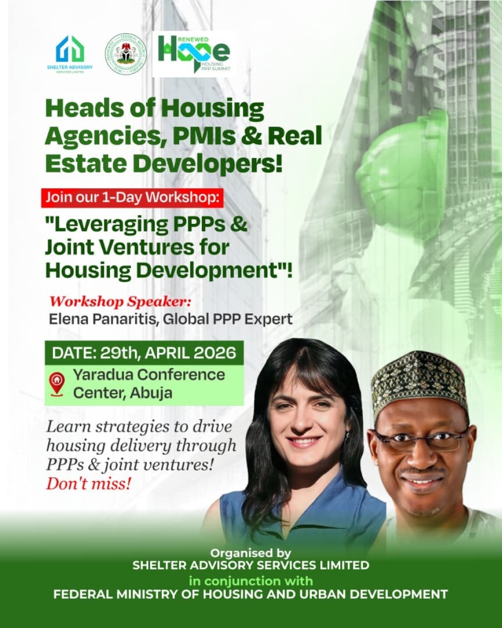 Housing Ministry, Shelter Advisory Convene Summit on Renewed Hope Housing PPP * Summit, a high-level policy and transaction platform, dedicated to advancing structured Public-Private Partnerships for housing delivery in Nigeria. The Federal Ministry of Housing and Urban Development in conjunction with the Shelter Advisory Services Limited will convene the second edition of the Renewed Hope Housing PPP Summit to accelerate large -scale housing delivery. It is scheduled for April, 2026 at YarAdua Center, Abuja under the theme “From Policy to Projects: Financing and Delivering Housing at Scale through PPPs”. The summit is a high-level policy and transaction platform, dedicated to advancing structured Public-Private Partnerships for housing delivery in Nigeria. The objective is for stakeholders from federal and state policy makers, legislators, institutional investors, developers, and development partners to review and align policy frameworks with implementable housing projects. It will also provide a practical, transaction-focused platform where the stakeholders would engage on how to structure, finance, and implement viable housing PPPs, with emphasis to be placed on project pipelines, financing instruments, risk-allocation frameworks, and successful delivery models that can be replicated across states. This year’s theme, reflects the central objective of the second Edition of the Renewed Hope Housing PPP Summit: to bridge the gap between well-articulated policies and tangible, bankable housing projects on the ground. It recognises Public–Private Partnerships (PPPs) as the most viable pathway for mobilising long-term finance, aligning public land and infrastructure with private sector expertise, and delivering housing at the scale Nigeria urgently requires. Vice President, Kashim Shettima is expected to serve as the Special Guest, while the Minister of the Federal Capital Territory, Nyesom Wike will serve as the host. The Ministerial Address will be delivered by Arc. Ahmed Musa Dangiwa, Minister of Housing and Urban Development. Accordingly, Minister of Finance, Wale Edun, Senator Aminu Waziri Tambuwal, Chairman of the Senate Committee on Housing, and Abdulmumin Jibrin, Chairman of the House Committee on Housing, will also make presentations at the Summit. Ms. Elena Panaritis, Founder of Thought4Action and an international expert in property rights reform, informal economies, and PPP driven housing development, will deliver the Summit’s keynote address. Lined up for the one day summit, also is a training workshop titled “Leveraging PPPs & Joint Ventures for Housing Development”, to be held for Heads of Housing Agencies, PMI’s, and developers. Other features include special closed-door executive sessions, private interactive engagements with the Honourable Minister of Housing and Urban Development and the Permanent Secretary, one-on-one strategic coaching, and high-level discussions for captains and doyens of the housing industry. Essencially, the Summit seeks to move the housing conversation beyond strategy into sustained delivery, translating policy clarity into investable projects and measurable impact for Nigerian cities and communities.